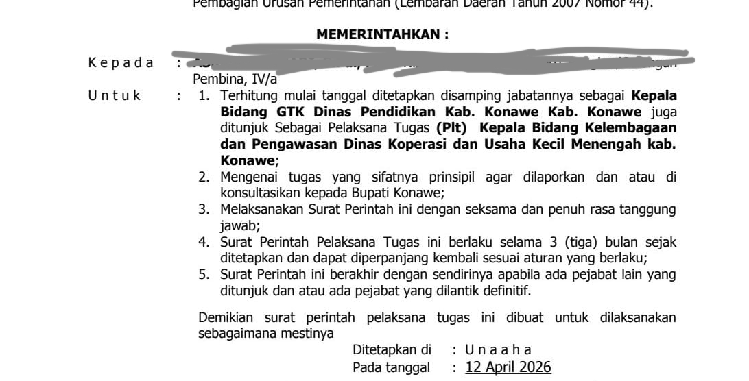 Kadis Koperasi Konawe Disebut Legalkan PLT Kabid Tanpa SK Sah