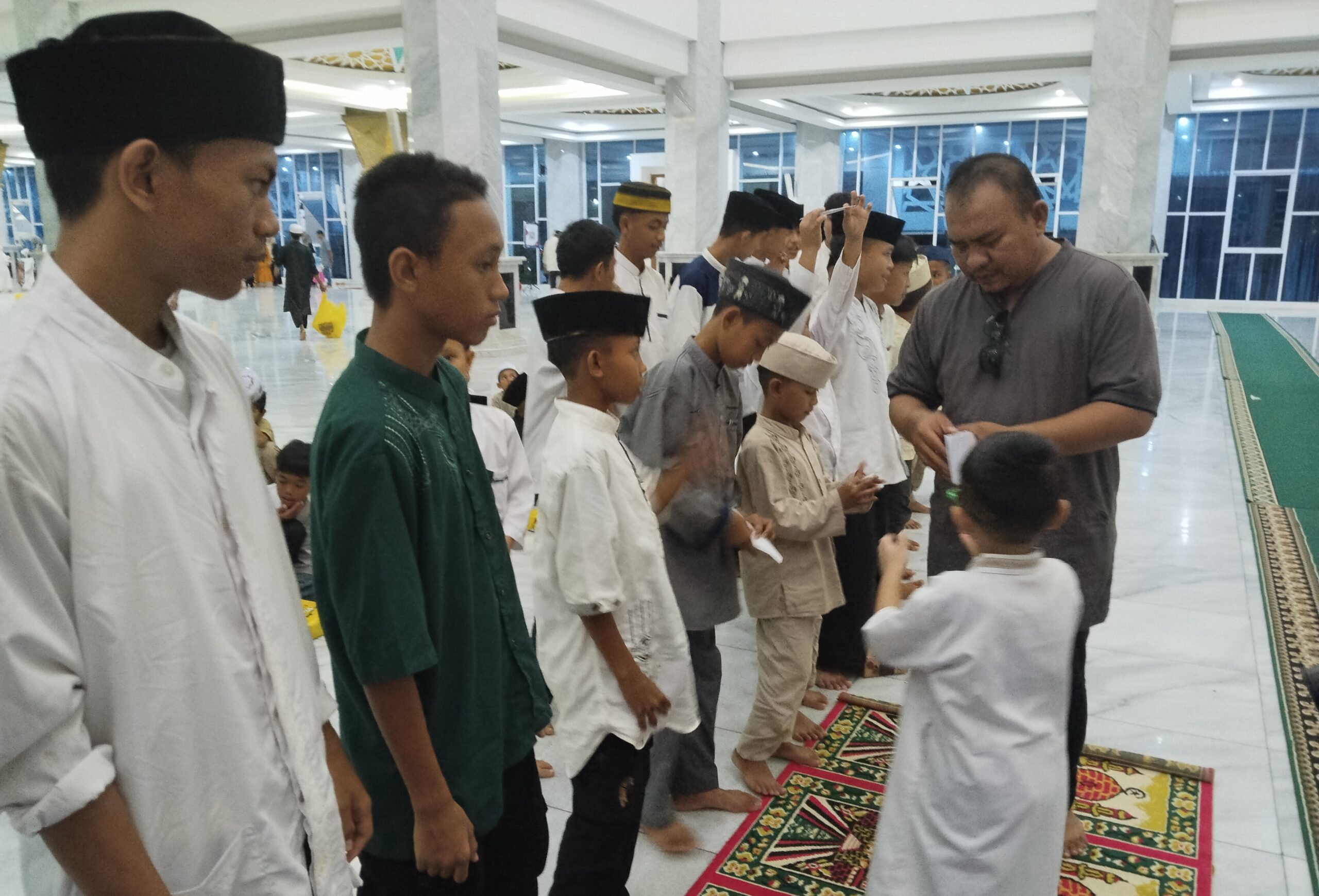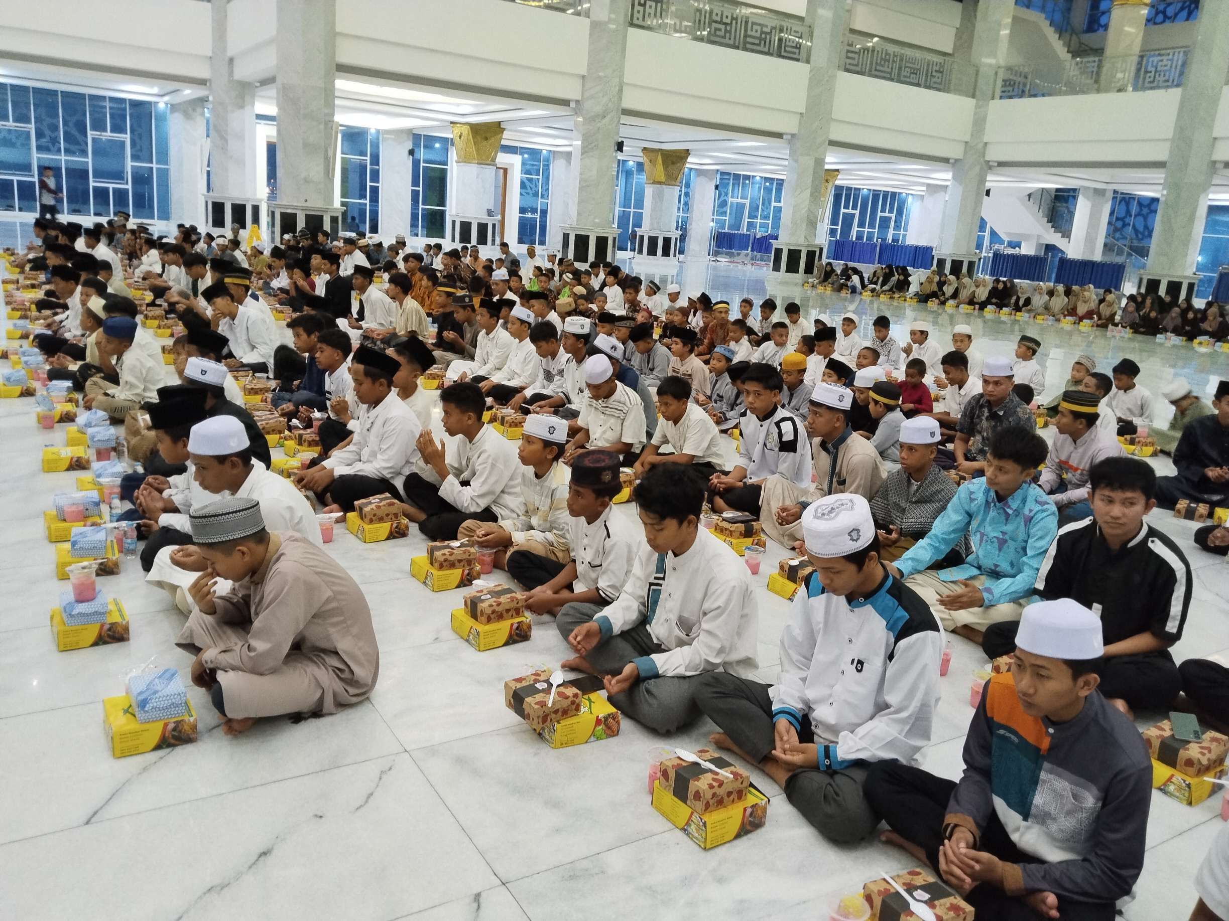 Pantauan Terakata.co, ratusan santri dan anak yatim tampak memadati Masjid Al Alam untuk mengikuti kegiatan buka puasa bersama yang berlangsung penuh kebersamaan dan kekhidmatan.
